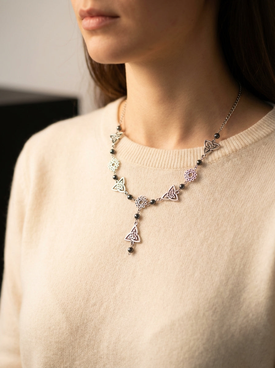 Hematite & Celtic-Style Knot Necklace – Grounding, Protection & Balance
